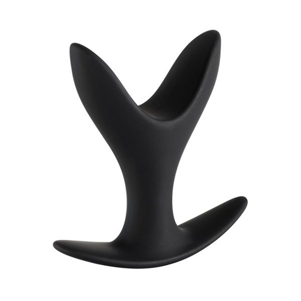 Черная втулка с двумя "лепестками", которые смыкаются для комфортного введения и раскрываются в анальном проходе, обеспечивая приятное чувство наполненности и необыкновенную стимуляцию.
