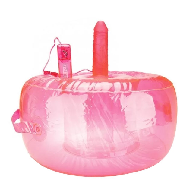 Розовая надувная подушка для секса с фаллоимитатором-вибратором.
